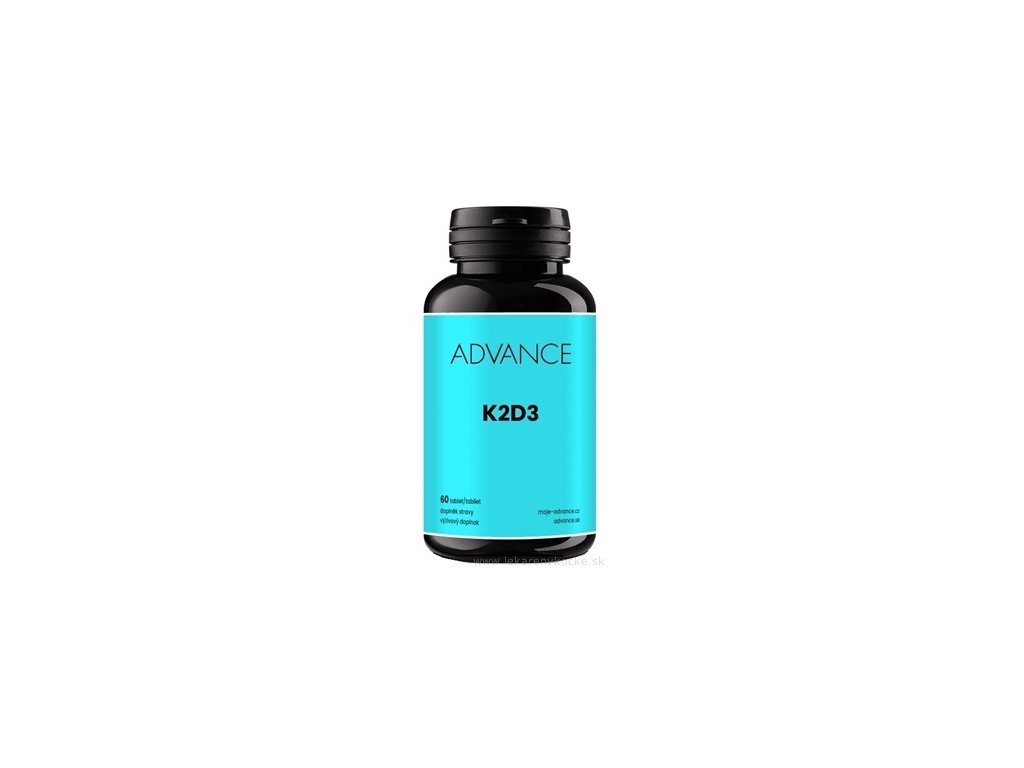 K2D3 ADVANCE je unikátny výživový doplnok. Obsahuje kombináciu vitamínu K2 vo forme MK7, vitamínu D3 a vápnika pre maximálny synergický účinok. Neobsahuje lepok, laktózu ani mliečnu bielkovinu.