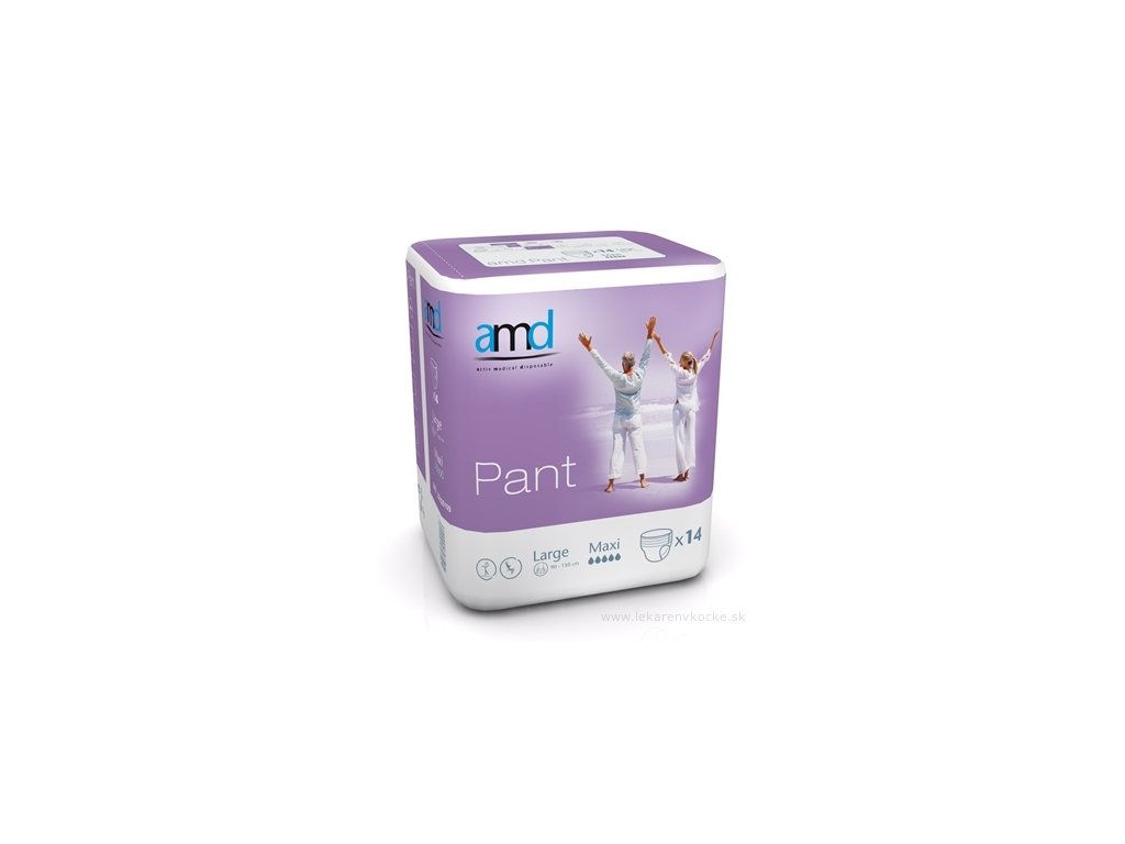 amd Pant Maxi Large sú navliekacie plienkové nohavičky určené pre osoby trpiace ťažkou inkontinenciou moču alebo stolice. Vďaka vysokej nasiakavosti 2300 ml poskytujú maximálnu ochranu, pocit sucha a bezpečia počas celého dňa i noci. Tieto nohavičky sú ideálnou voľbou pre mobilných aj imobilných pacientov, ktorí požadujú spoľahlivú inkontinenčnú pomôcku s jednoduchým použitím.
