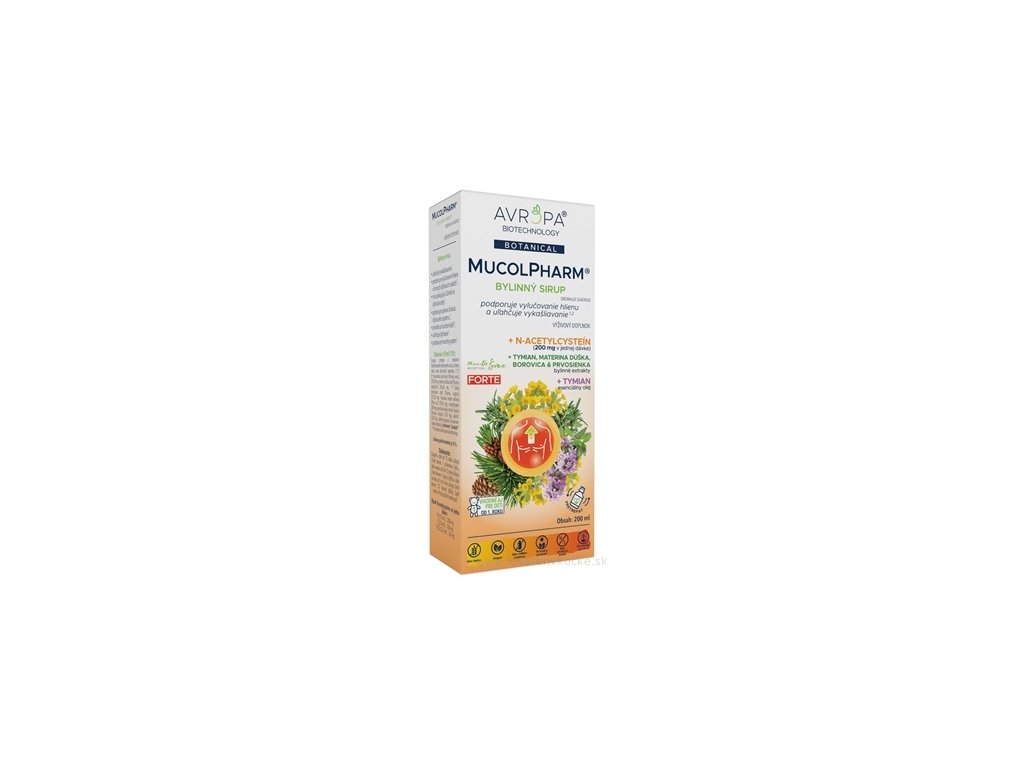 Bylinný sirup, obsahujúci bylinné extrakty z prvosienky jarnej (Primula veris), materinej dúšky (Thymus serpyllum), dúšky tymianovej (Thymus vulgaris), borovice (Pinus sp.), n-acetylcysteín a esenciálny olej tymian linalool (Thymus vulgaris):