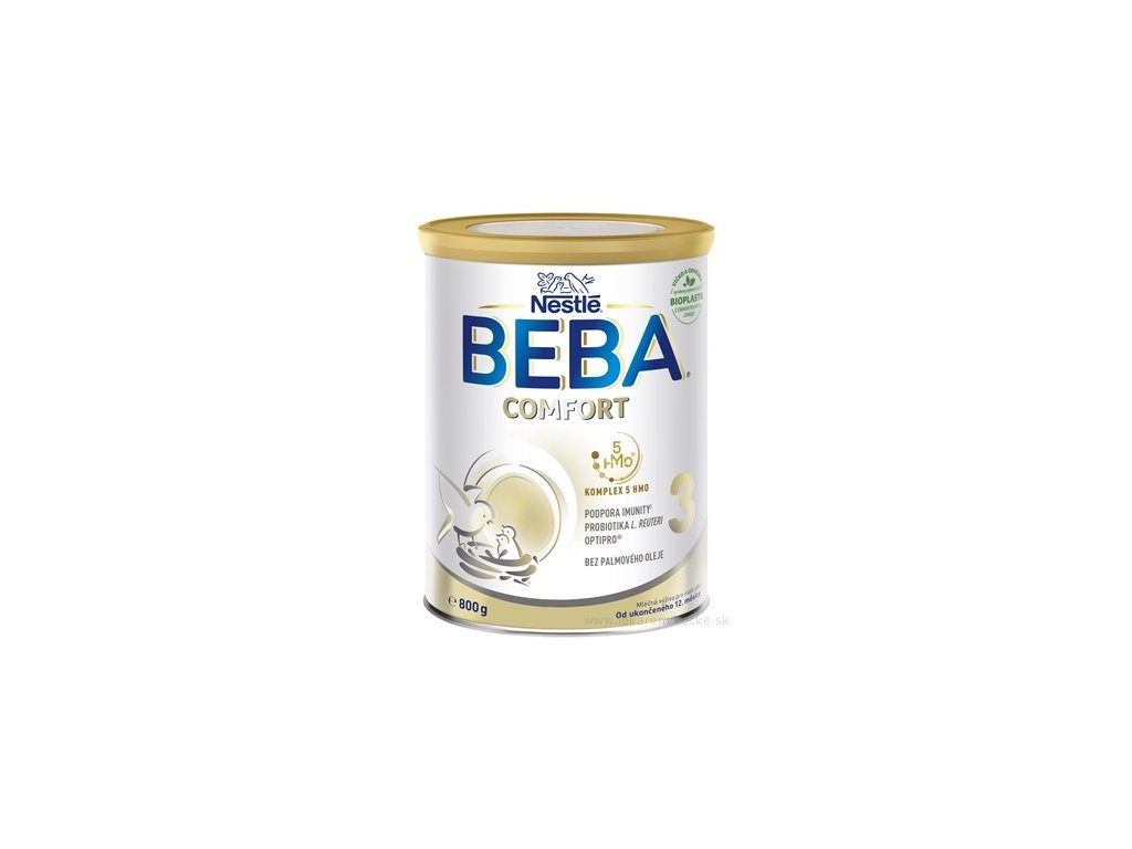 BEBA COMFORT 3 HM-O, instantná mliečna výživa pre malé deti, s baktériami mliečneho kvasenia L. reuteri, obohatená vitamínmi a minerálnymi látkami. Od ukončeného 12. mesiaca, 800 g plech. Bez palmového oleja. 1x800g