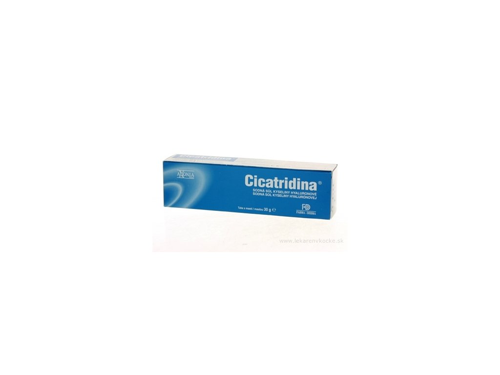 Masť CICATRIDINA pôsobí vďaka prítomnosti kyseliny hyalurónovej, mukopolysacharidu, ktorý je distribuovaný v mnohých telesných tkanivách. Kyselina hyalurónová slúži ako štrukturálna podpora. Zloženie: Voda, tekutý parafín, cetylstearylalkohol, olej zo sladkých mandlí, polyoxyetylén (2) stearyléter, polyoxyetylén (21) stearyléter, glycerín, sorbitol 70 %, silikónový olej, diglukonát chlórhexidínu 20 %, imidazolidinylová močovina, sodná soľ kyseliny hyalurónovej, dvojsodná soľ EDTA, BHT.