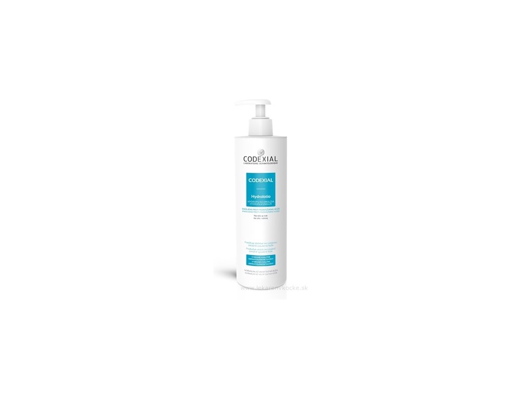 CODEXIAL HYDROLOTIO je hydrofilná premasťujúca emulzia na starostlivosť o kožu. Je špeciálne vyvinutá pre normálnu až veľmi suchú kožu. Vďaka svojej tekutej konzistencii sa ľahko aplikuje, je vhodná na ochlpené časti tela, rýchlo preniká do pokožky a nezanecháva mastný film.