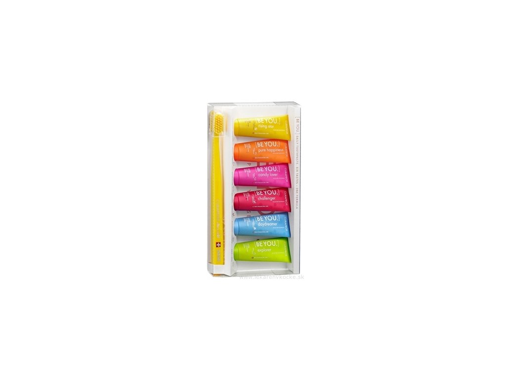 Balíček obsahuje 6 vzoriek zubných pást a zubnú kefku.
