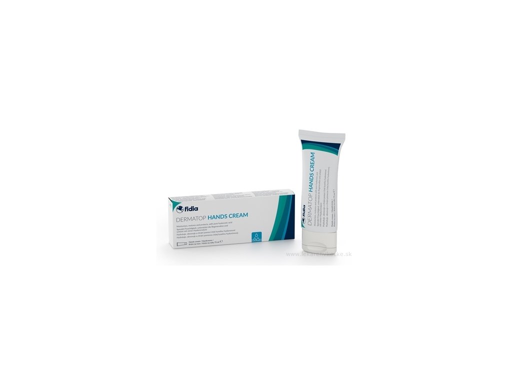 dermatop hands cream, dermatop krém na ruky, krém s kyselinou hyalurónovou, hydratačný krém na ruky, krém na suché ruky, krém na popraskané ruky, regeneračný krém na ruky, starostlivosť o pokožku rúk, ochranný krém na ruky, dermatop ruky, fidiapharma krém, hydratačná kozmetika na ruky