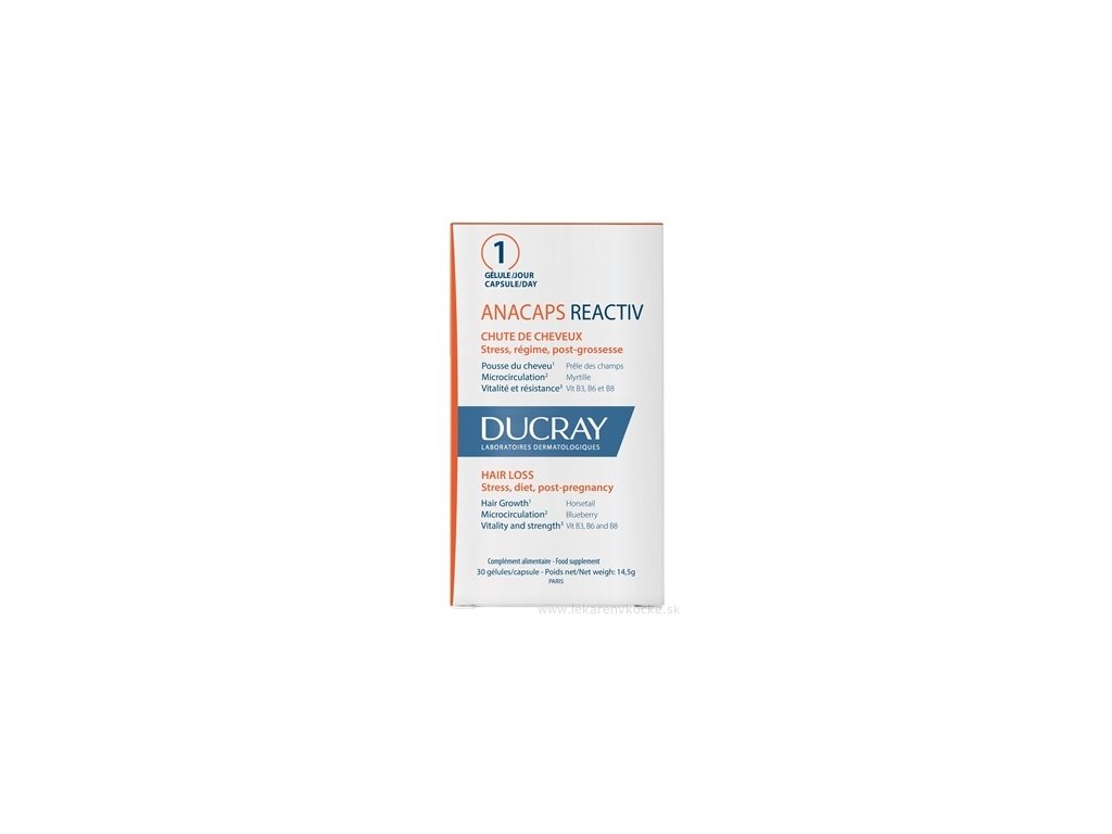 Vitamíny B3 a B6 pomáhajú znižovať únavu³. Okrem toho ANACAPS REACTIV vďaka vitamínu B8 (biotín) a selénu prispieva k udržaniu zdravých vlasov a nechtov počas príležitostného a dočasného vypadávania vlasov (súvisiaceho so stresom, únavou, po pôrode, niektorými liekmi, sezónnymi zmenami, obmedzujúcou stravou).