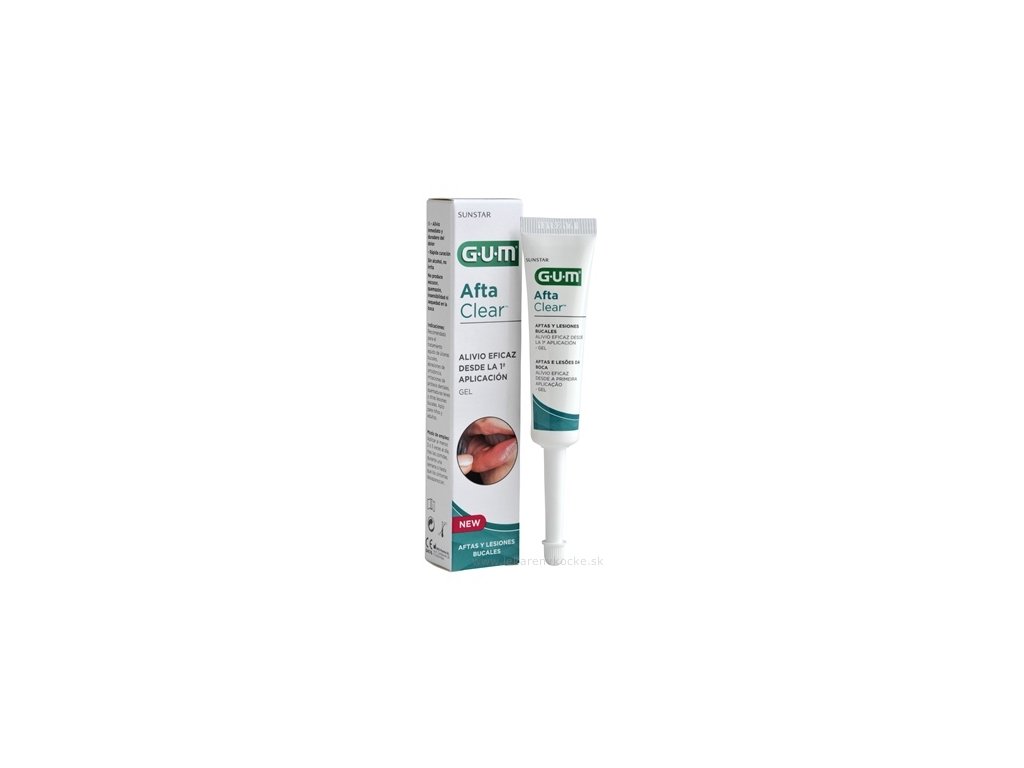 GUM AftaClear gél, univerzálna starostlivosť na okamžité utíšenie bolesti a rýchle hojenie vriedkov v ústach (áft), ortodontických odrenín, podráždených miest od zubných náhrad, drobných popálenín či iných slizničných defektov.