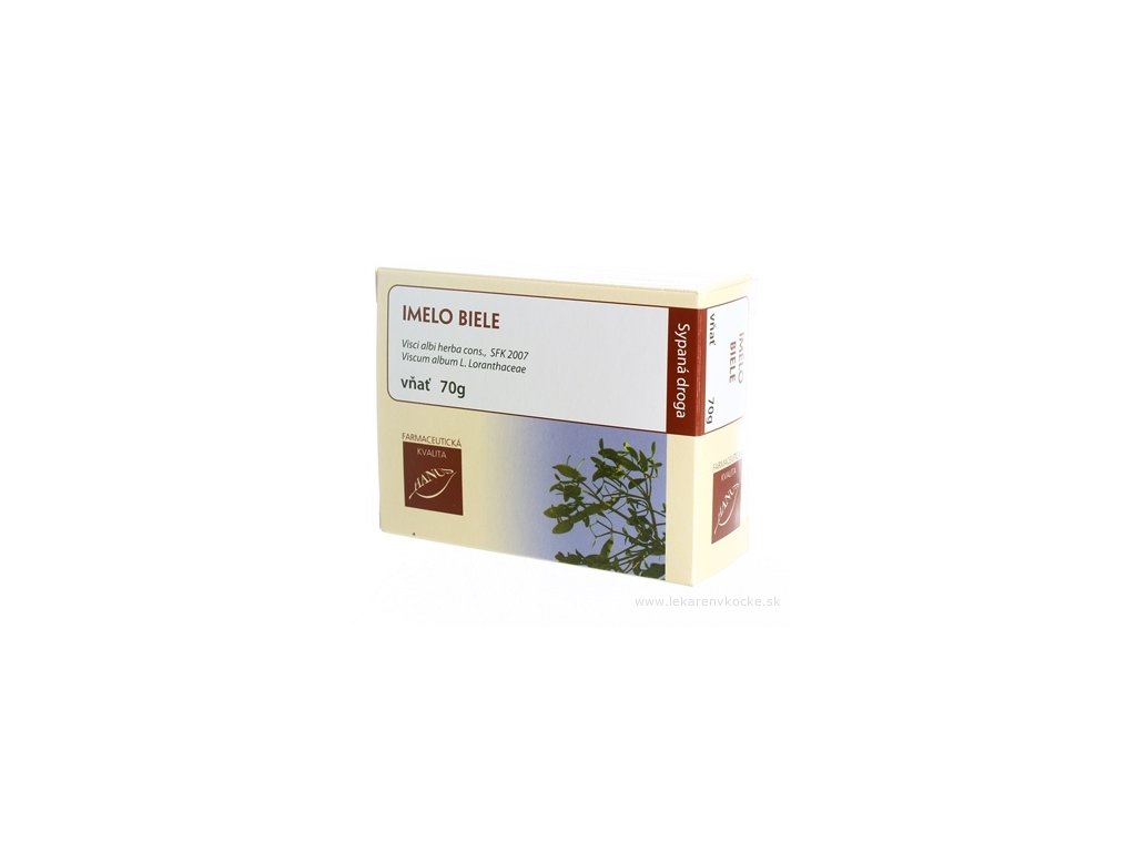 Sypaná droga Imelo biele vňať (lat. Viscum album), vákuovo balená. Vákuové balenie zachová účinné látky, vôňu a chuť liečivej rastliny.