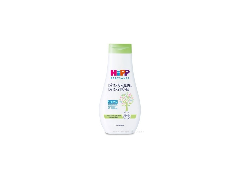 HiPP Detský kúpeľ „Hroch“ - kombinácia zelenej vody a jemnej peny pre radosť z kúpania malých i dospelých. Stará sa o pokožku veľmi šetrne, zachováva jej prirodzený kyslý plášť a chráni ju pred vysušením. S cennými prírodnými výťažkami z BIO mandlí, bez mydla, neštípe v očiach.