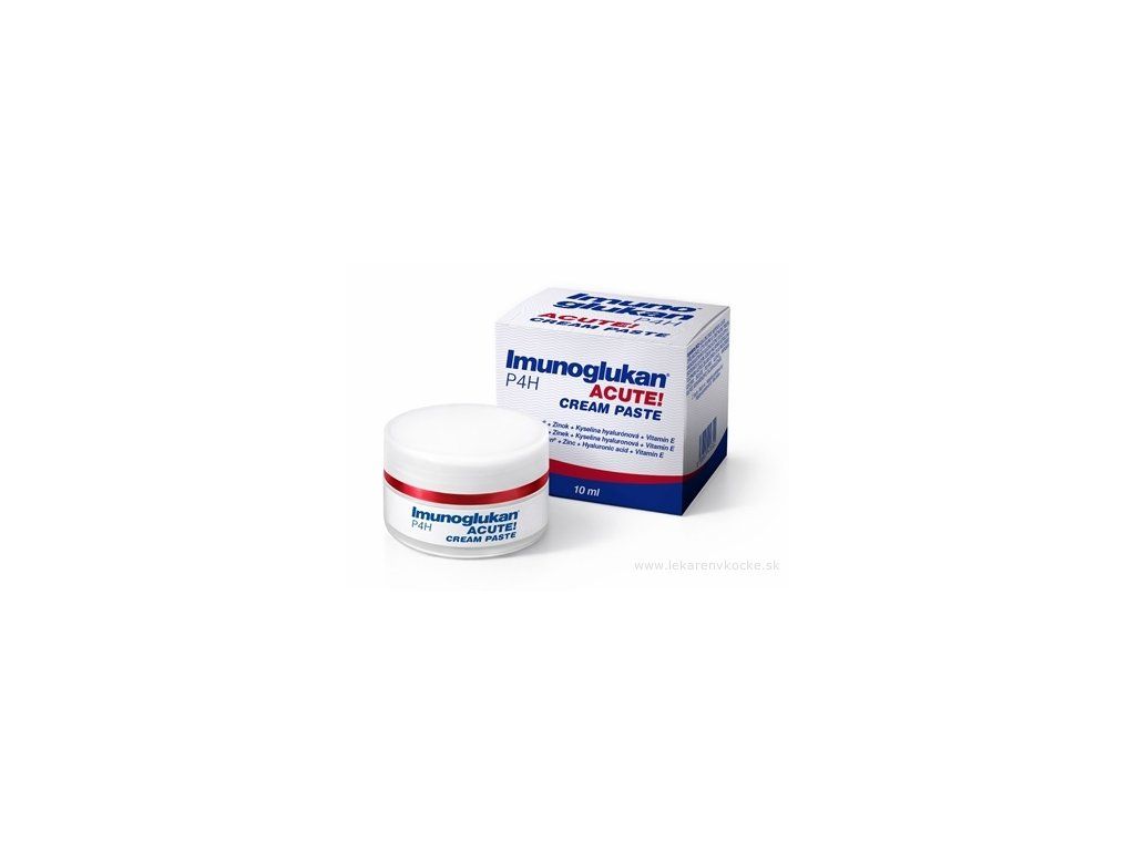 Imunoglukan P4H ACUTE! CREAM PASTE je kozmetický prípravok vo forme krémpasty určený na starostlivosť o podráždenú, namáhanú a oslabenú pokožku. Vytvára na pokožke ochrannú vrstvu, ktorá pomáha chrániť ju pred vonkajšími vplyvmi a zároveň podporuje jej hydratáciu a regeneráciu.