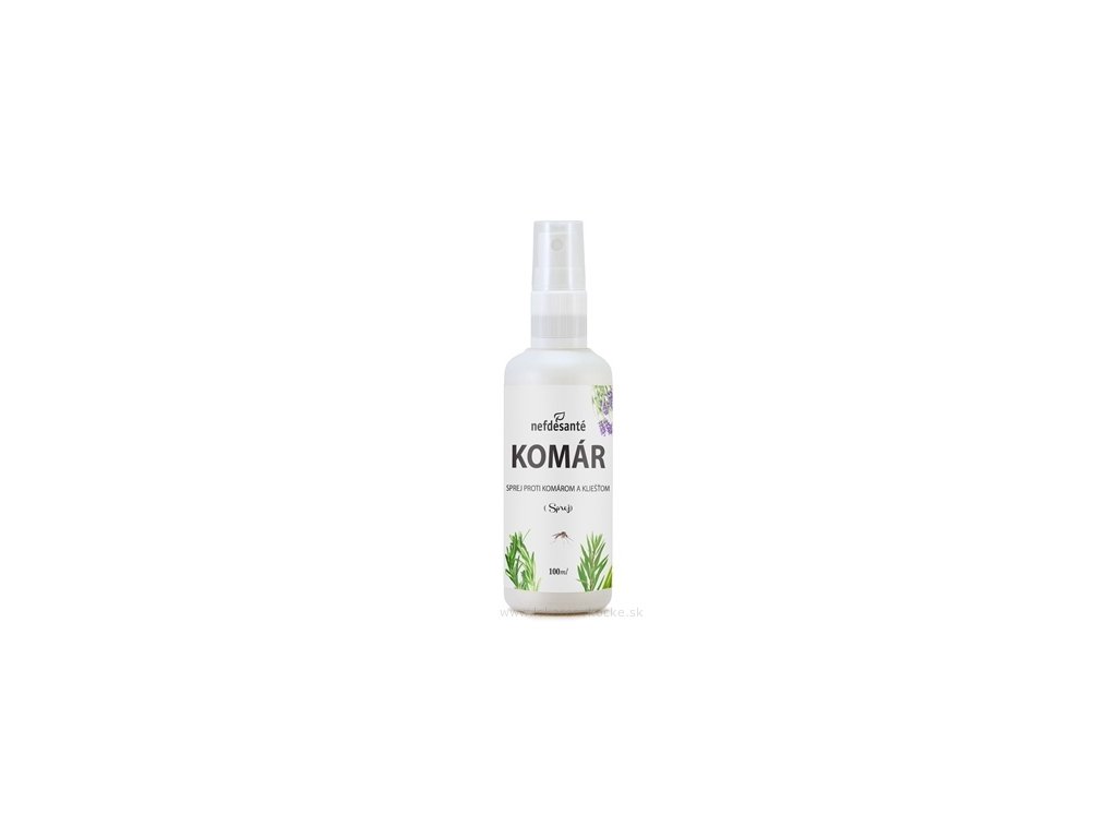 Nef de Santé Komár sprej proti komárom a kliešťom odpudzuje komáre, kliešte a rozličný lietajúci hmyz a chráni tým pokožku pred ich uhryznutím (uštipnutím).