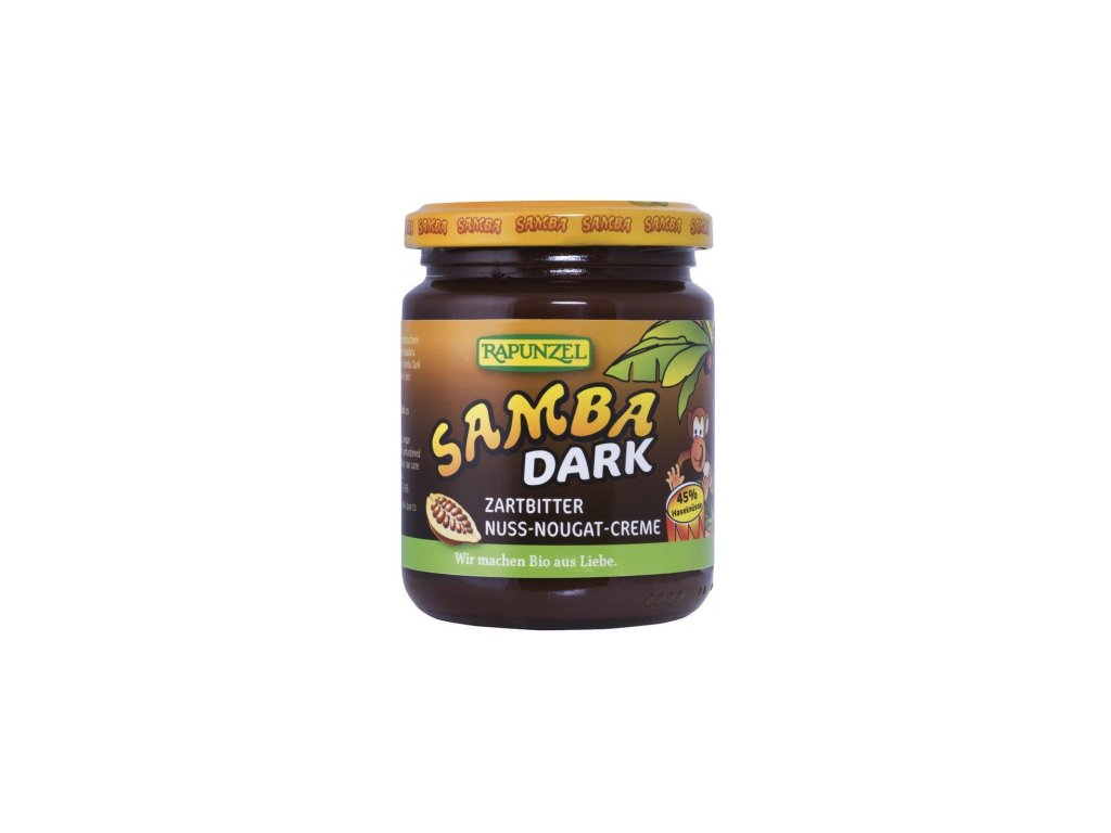 Obsahuje 45% šetrne pražených mletých lieskových orieškov a 15% kakaa. Sladená je sušenou trstinovou šťavou Rapadura a prírodným trstinovým cukrom a parfumovaná pravou Bourbon vanilkou. Fair trade palmový olej pochádza z Ghany, kde sú v rámci projektu palmy vysadené s ohľadom na životné prostredie a na získanie nových plantáží nedochádza k odlesňovanie. SAMBA DARK je výbornou voľbou pre milovníkov horkej čokolády, vegánov a pre tých, ktorí sa vyhýbajú mlieku. Je vynikajúci na pečivo, do dezertov, zlepovať cukrovinky a piškót, na pečenie aj priame maškrtenie. Najlepšie chutí dobre vychladená.