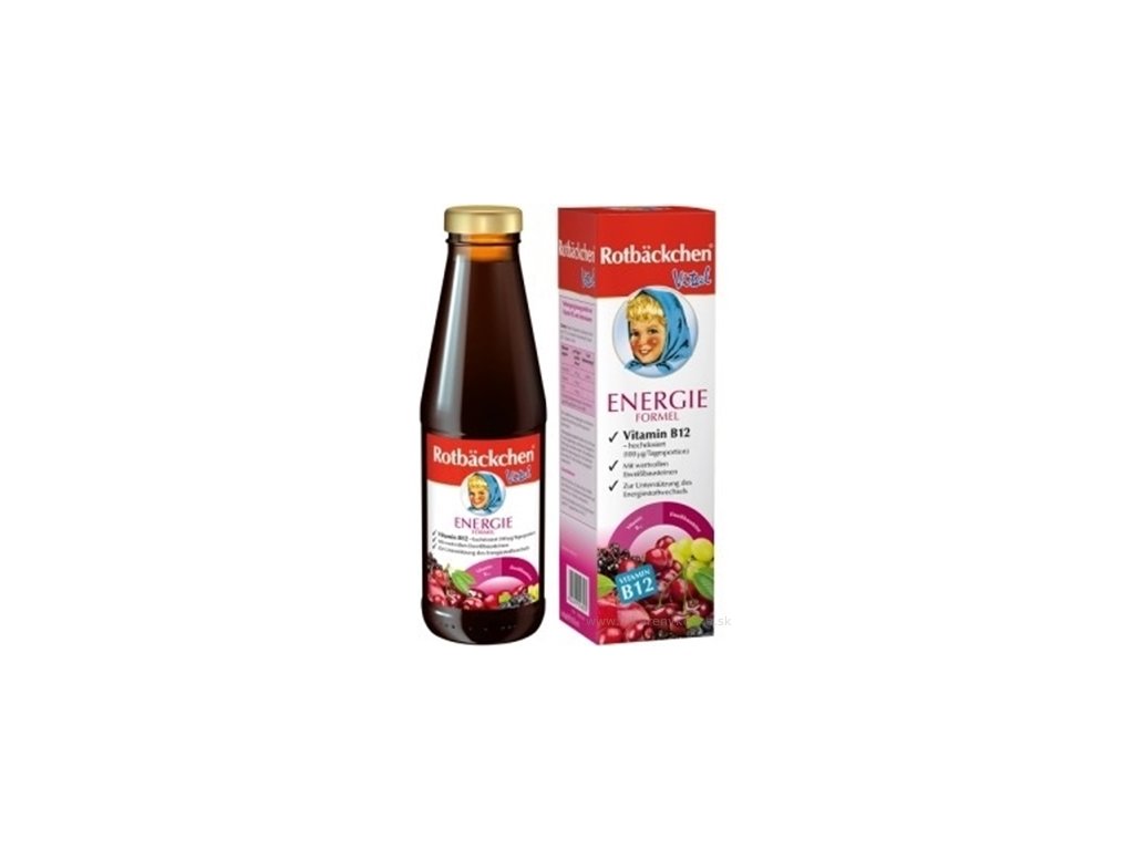 Výživový doplnok s vitamínom B12 a aminokyselinami na podporu energetického metabolizmu s vysokým obsahom vitamínu B12 a cennými proteinovými zložkami. Vitamín B12 podporuje energetický metabolizmus nášho tela. Okrem toho prispieva k normálnej funkcii nášho nervového systému a zároveň prispieva k tvorbe červených krviniek, a taktiež pomáha znižovať únavu a vyčerpanie. Bez alkoholu, bez lepku, bez laktózy. S praktickým dávkovačom. Zloženie: šťava z bieleho hrozna, jablková šťava, čerešňová šťava(12%), aróniova šťava,bazová šťava, vitamín B2 glutamín, serín. Dávkovanie: 2 x denne 20 ml= 40ml denná dávka