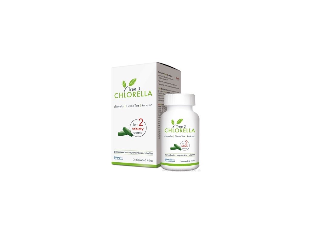 Tree 3 CHLORELLA je výživový doplnok, ktorý obsahuje komplex 3 prírodných zložiek: Camellia sinensis, s obsahom čajových polyfenolov (zelený čaj), Chlorella (nešpecifikovaná), Curcuma. Prípravok vďaka obsahu chlorelly (1):