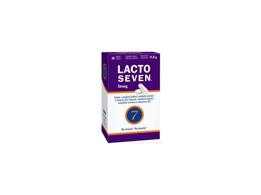 Lacto Seven Strong -kapsula obsahuje celkom 10 miliárd živých baktérií mliečneho kvasenia zo siedmich rôznych kmeňov baktérií mliečneho kvasenia (vrátane kmeňov Lactobacillus a Bifidobacterium). Kapsula tiež obsahuje vitamín D3, ktorý prispieva k normálnej funkcii imunitného systému.