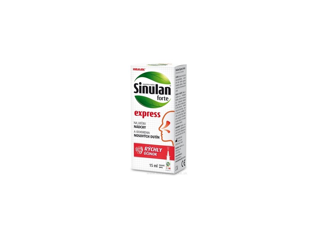 WALMARK Sinulan forte express je zdravotnícka pomôcka vo forme viskózneho nosového spreja, ktorý je určený na rýchle uvoľnenie upchatého nosa a zmiernenie nepríjemných príznakov spojených so zápalom nosovej sliznice. Obsahuje hypertonický roztok, ktorý pôsobí mechanicky – vytvára osmoticky aktívny film na sliznici a priťahuje hypotonickú tekutinu z hlbších vrstiev tkaniva. Tento proces pomáha odstrániť opuch, uvoľniť nosové priechody a odvádzať všetky neželané látky usadené v dutinách.