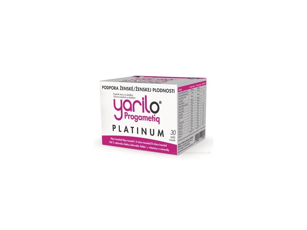 Yarilo® Progametiq® PLATINUM je vhodný pre obdobie snaženia sa o počatie. Obsahuje oba druhy inozitolu, aktívny folát, zinok, selén, vitamíny C a E, vitamín D3 a horčík, vitamíny B6 a B12, chróm a škoricu. Partnerom sa odporúča užívanie Yarilo® Man aspoň 3 mesiace pred plánovaným pohlavným stykom. Pri pohlavnom styku je vhodné používať Yarilo® motility NR gél. Ako doplnok možno užívať Yarilo® PRL s extraktom z Vitexu jahňacieho. Výrobok je určený pre ženy v reprodukčnom veku.